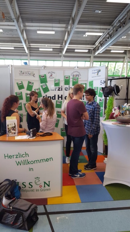 Durch persönliche Kontakte bekamen wir dann die Möglichkeit, unsere KiTa auf einer Ausbildungsmesse zu präsentieren, dabei aktiv unseren Beruf und die Einrichtung zu präsentieren und auch dort